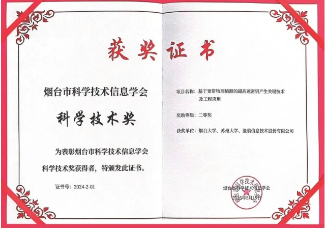 富易堂fyt富易堂信息与烟台大学、苏州大学联合完成的 "基于宽带物理熵源的超高速密钥产生关键技术及