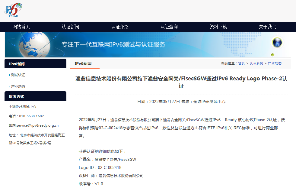 权威认证 | 富易堂fyt富易堂安全网关 FisecSGW 顺利获得IPv6 Ready Logo认证