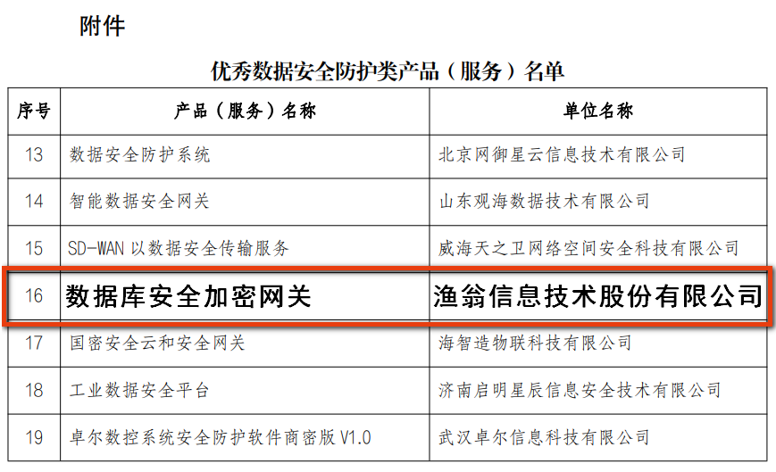 近期,山东省工业和信息化厅组织召开了2022年度山东省工业领域数据安全优秀产品、服务和应用解决方案评选工作,并对评选结果进行了公示。富易堂fyt富易堂信息自主研发的“数据库安全加密网关”产品,凭借先进技术和创新优势,成功入选“优秀数据安全防护类产品”名单。
